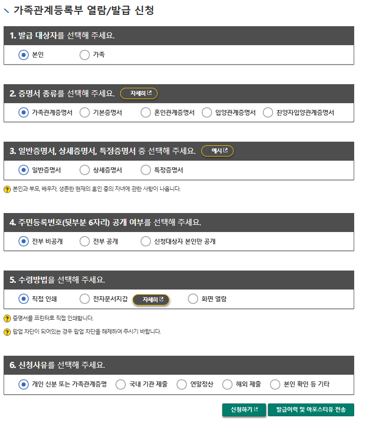 가족관계증명서 인터넷발급 방법