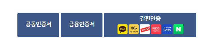 인증 방식: 금융인증서, 공동인증서, 간편인증서 이용 가능