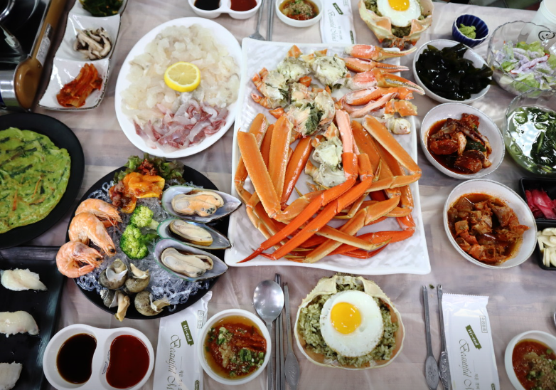 이곳은 단새우 요리 외에도 대게, 활어회, 물회 등 다양한 해산물 요리로 유명합니다. 커플 스페셜 메뉴는 대게와 회, 미니 물회가 포함되어 있어 커플들이 함께 즐기기 좋은 세트 구성이라고 해요. 가격은 17만 원부터 시작하며, 대표 메뉴인 대게궁 스페셜은 27만 원으로 더욱 풍성한 구성을 자랑합니다. 대게뿐 아니라 광어, 우럭, 참돔 등 다양한 생선회도 준비되어 있어, 해산물을 다양하게 즐길 수 있는 것도 큰 장점입니다.