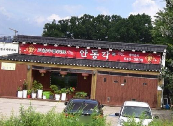 : 네이버 지도를 이용해 '안동각'을 검색하면 엉뚱한 길로 안내될 수 있어요! 반드시 맞은편의 삽다리마트를 기준으로 찾아오세요. 마트 맞은편이 바로 안동각입니다.