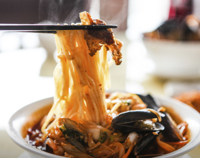 해물과 야채, 고소한 차돌박이의 조화가 돋보이는 진한 국물이 특징입니다. - 왕갈비짬뽕 (17,000원)